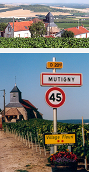 Mutigny est apparu dès le Xe siècle, sous le nom de « Mutiniacus » nom d'une personnalité latine, « mutta » qui veut dire motte et qui désignait autrefois un site fortifié bâti en bois sur une colline. Le nom du village pourrait également venir du mot latin « Mont-ignis » signifiant « Mont de feu ». En effet, il y a des siècles nos aïeux communiquaient, notamment pour prévenir des invasions, par le feu et la fumée de mont à mont. Face à l'église, vous découvrirez le Mont-Aigu (au dessus d'Avenay Val d'Or), le Mont Bernon qui domine Epernay, et le Mont-Aimé qui surplombe Vertus.